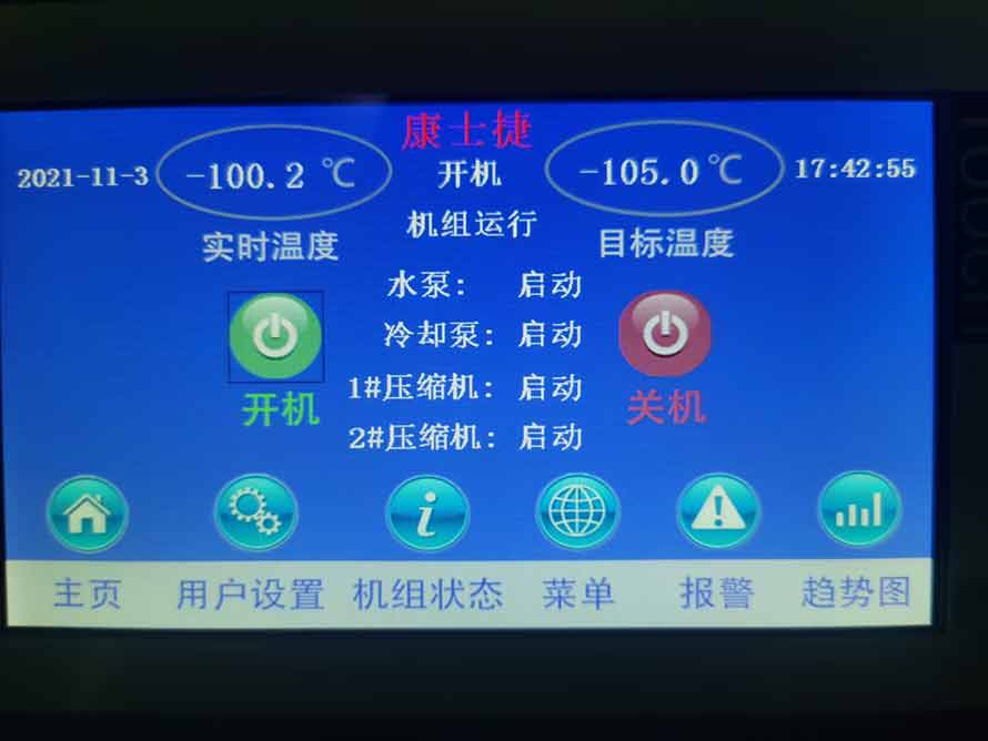 江蘇康士捷機(jī)械設(shè)備有限公司生產(chǎn)的零下100度(-100℃)復(fù)疊式制冷機(jī)組超低溫冷凍機(jī)組運(yùn)行穩(wěn)定,可靠。