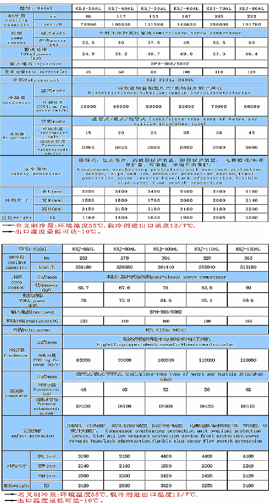 低溫風冷式冷水機參數