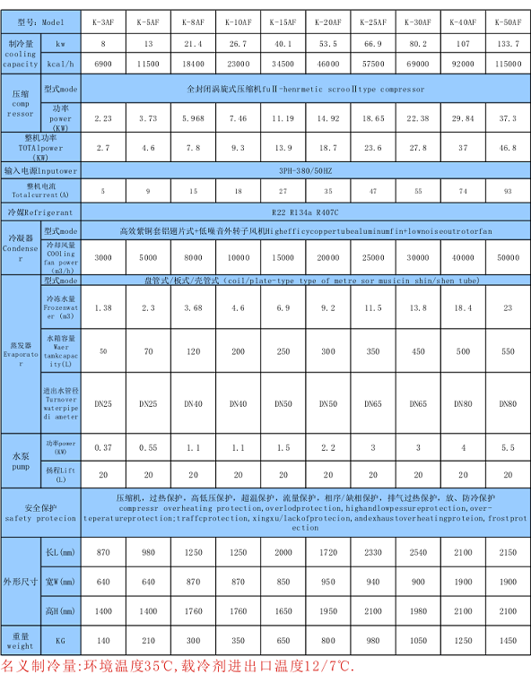 8.水冷及風冷式規(guī)格齊全(功率:3HP-300HP,制冷量從600W至34800W)專門設有適合各行業(yè)機械設備配套之機型,可按客戶要求特別制造。