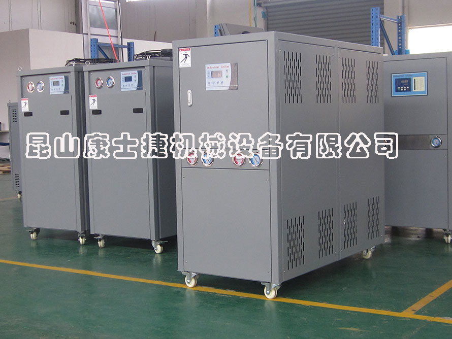 目前工廠使用*多的便是注塑機,塑膠粒經加熱溶化后注入模具中,凝結后,開模頂出成型塑膠工件,在連續生產過程中有需用對模具進行冷卻,以縮短塑膠凝結時間,提高工件尺寸精度,成型質量、表面質量。而在早期,很多用戶選用冷卻水塔為其降溫,這種冷卻方式只適合在環境溫度較低的情況下達到降溫目的,一旦環境溫度升高,則無法保證產品精度。因此,就需要使用到冷水機。