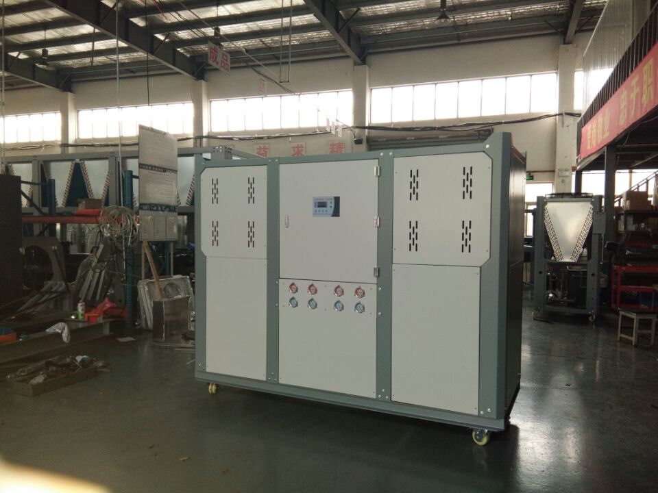水冷式工業制冷機組是通過冷卻塔以冷卻循環水為冷凝方式的控溫設備,有箱式和螺桿式。箱式單機輸出馬力從3HP~60HP,螺桿式單壓縮機輸出馬力從30HP~280HP,螺桿式雙壓縮機輸出馬力從220HP~560HP.