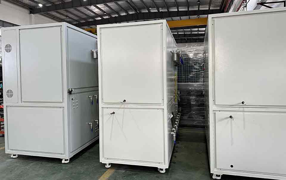 釩液流恒溫機組有變頻型,線性控溫,精度±0.5℃等供不同工藝選用。