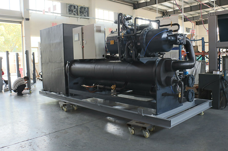 乙二醇工業冷水機組是以乙二醇為載冷劑的控溫設備,控溫范圍在-5度至-35度。